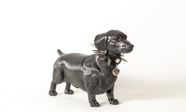 Apliques: negros de cuero vacuno, blancos cabretilla blanca, charol rojo (charol vacuno italiano) y collar con púas (con pelo de potro).