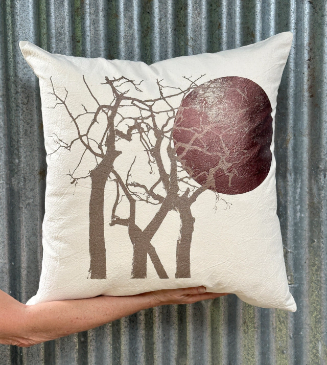 Funda de almohadón de lienzo crudo con serigrafía estampada. 100% algodón.