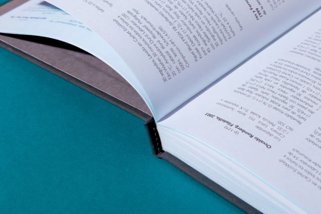 Encuadernación cocida a hilo, lomo cuadrado.