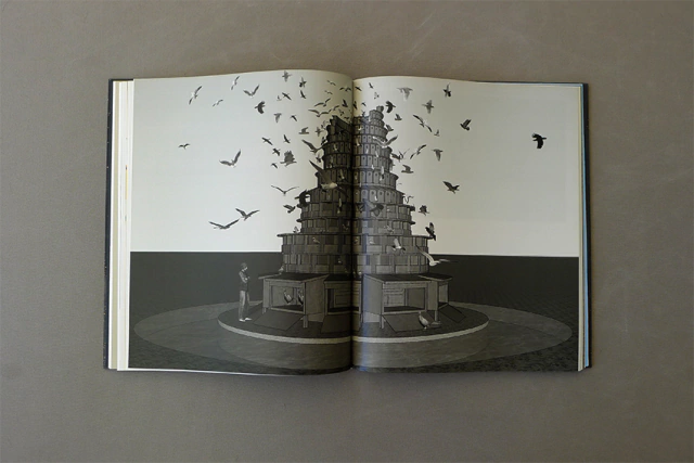Nada es sagrado para Miguel Rothschild. Al artista argentino radicado en Berlín (*1963) le gusta jugar con piezas fijas de la historia de la iglesia y con convenciones perceptivas: las fotografías de los rosetones de las catedrales son perforadas para sus sorprendentes objetos visuales o colgadas con hilo de pescar de colores: las madonas de cristal revolotean desde la pared como confeti o lluvia de colores. En la serie «Los pájaros», Rothschild puebla escenas de la película de Hitchcock con tórtolas de la historia del arte, con un resultado altamente siniestro. Construye juegos de habilidad a partir de celosías confesionales; el reto es intentar lo imposible y colocar una de las innumerables bolas en cada cruz. Incluso simula el big bang usando símbolos y signos de las tiras cómicas en lienzos pintados – ¿en el principio era la palabra? Rothschild se apropia de los iconos histórico-artísticos de una manera refrescantemente irrespetuosa, los libera de su estatus y su papel, y al hacerlo se apoya en la fuerza subversiva de la risa.