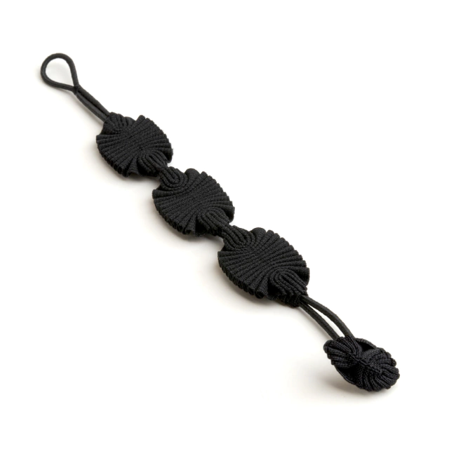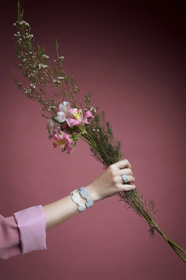 Pieza realizada con materiales textiles y una película selladora que protege la pieza alargando la vida del material y conservando su apariencia original. Confeccionada a mano a partir de la experimentación con materiales textiles elásticos en una búsqueda entre el arte y el diseño.