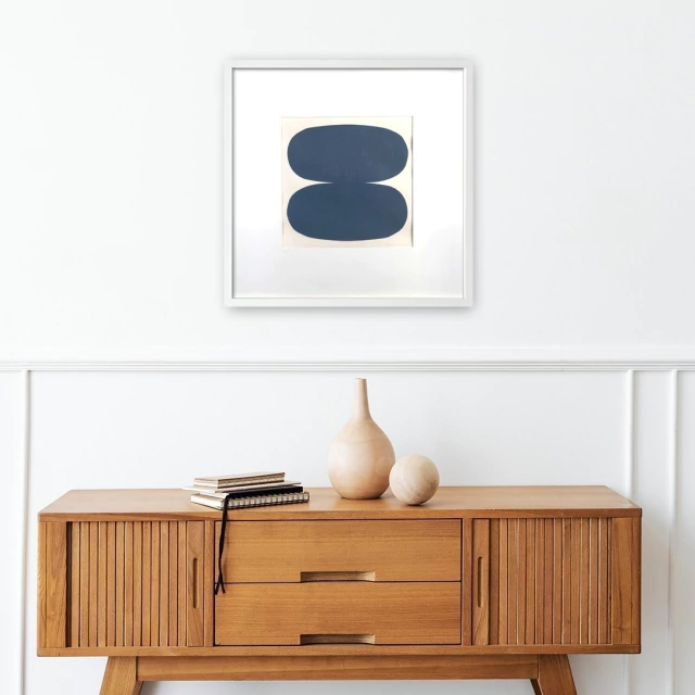 Enmarcada con varilla de madera (negro, blanco, madera natural kiri) y vidrio.