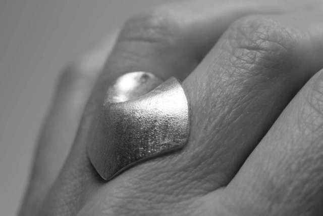 Este anillo está pensado para ir colocado entre los dedos mayor y anular.
