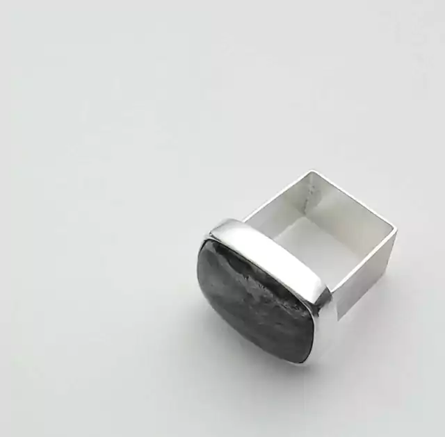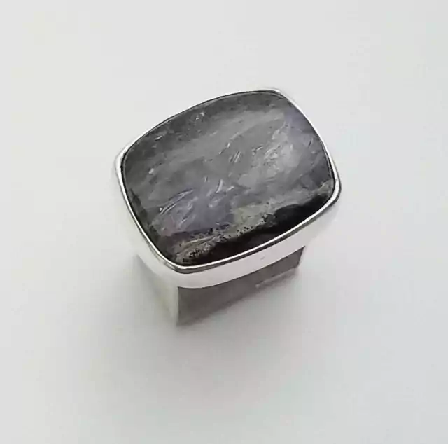 Anillo con aro en forma cuadrada realizado en plata 925 y charoita, para tamaño de dedo Nro. 15
