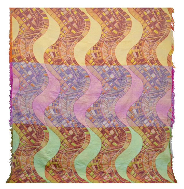 Tejido Jacquard industrial experimental con estructura alterada para producir vacíos, rupturas y transparencias como parte de la composición.